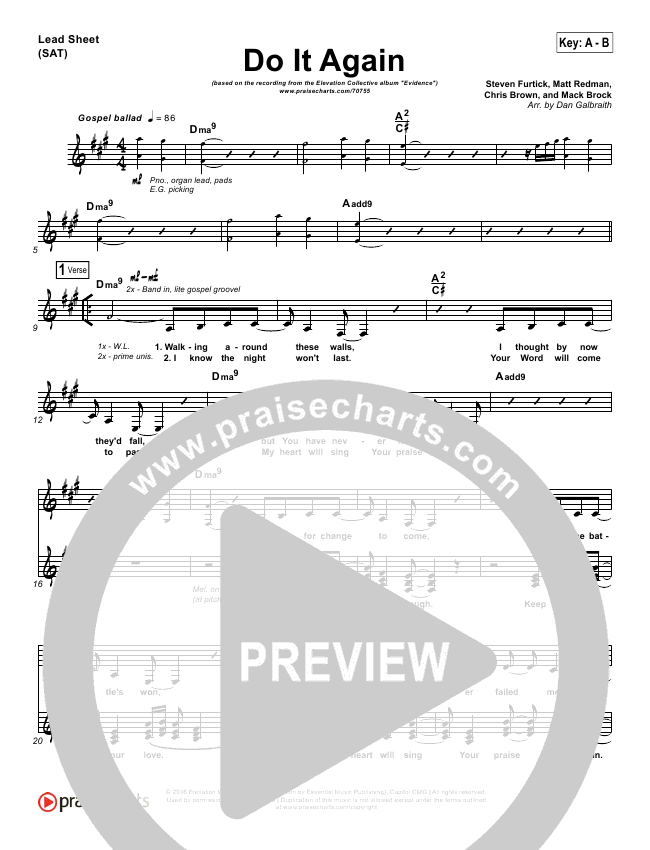Do It Again Lead Sheet Piano Vocal Elevation Collective